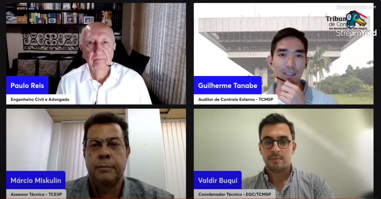 O encontro contou ainda com a participação como debatedores de Guilherme Tanabe, auditor de Controle Externo no TCMSP; e Márcio Miskulin, assessor técnico do Tribunal de Contas do Estado de São Paulo (TCE-SP) desde 1997. Tanabe tem graduação em Engenharia Civil pela Escola Politécnica da Universidade de São Paulo (USP) e pela École Nationale de Ponts et Chaussées (ENPC-ParisTech). Já Miskulin é engenheiro mecânico e bacharel em Direito, atuando na elaboração de pareceres e manifestações técnicas sobre licitações e contratos de obras e serviços de engenharia, para subsidiar os julgamentos de jurisdicionados do TCE-SP.
