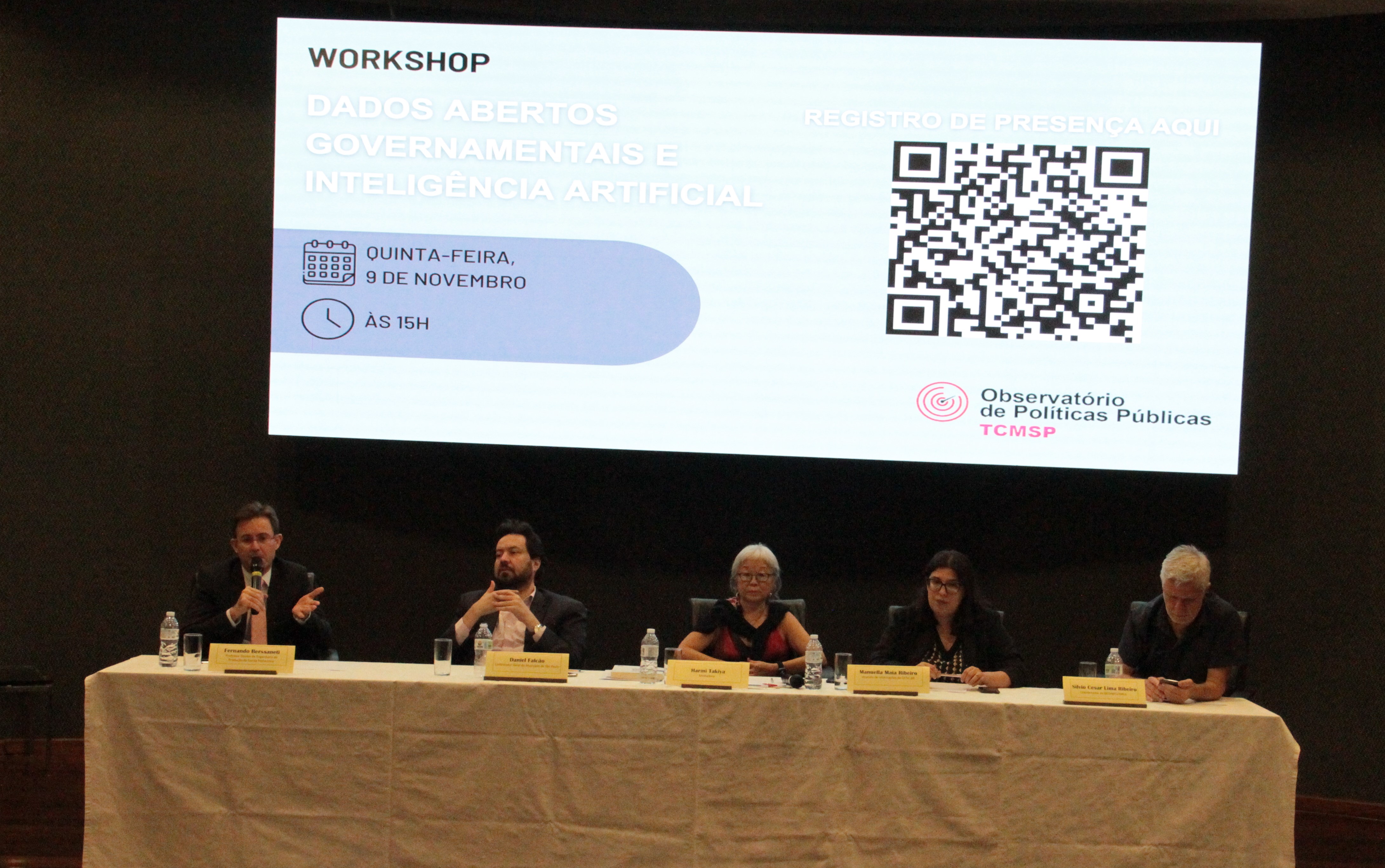 Para tratar do assunto, que foi abordado por diferentes ângulos, estavam Daniel Falcão, controlador Geral do Município de São Paulo; Silvio Cesar Lima Ribeiro, coordenador da Coordenadoria de Produção e Análise de Informação da Secretaria Municipal de Urbanismo e de Licenciamento; Manuella Maia Ribeiro, analista de informações do Centro Regional de Estudos para o Desenvolvimento da Sociedade da Informação; e Fernando Berssaneti, coordenador do Programa de Pós-Graduação em Engenharia de Produção da Escola Politécnica da Universidade de São Paulo. A mediação do encontro coube à coordenadora adjunta do OPP, Harmi Takiya.
