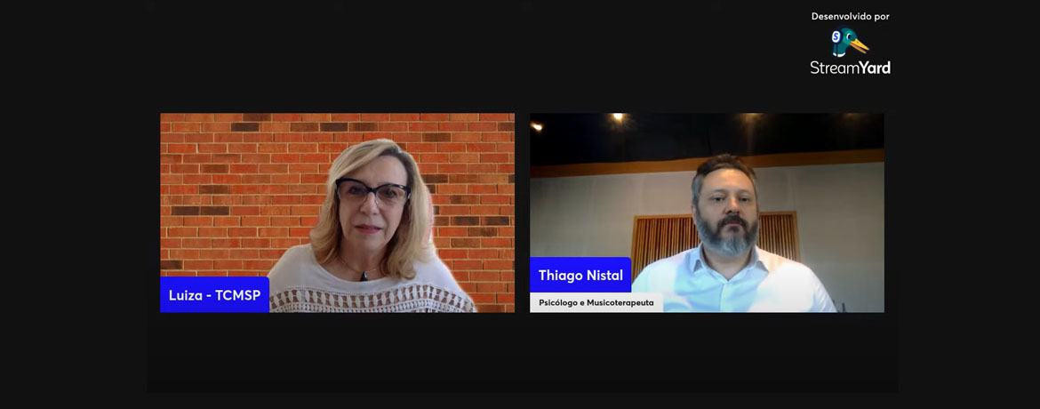 O psicólogo e musicoterapeuta Thiago Nistal foi o especialista convidado para participar da palestra on-line na área de recursos humanos com foco no tema “Gestão do Estresse e o Papel da Motivação”. A iniciativa virtual e aberta ao público foi realizada terça-feira (12/09) e teve promoção da Escola Superior de Gestão e Contas Públicas (EGC), em parceria com a Unidade de Gestão das Relações de Trabalho (GRT), do Tribunal de Contas do Município de São Paulo. A apresentação faz parte da série Ecos do Comportamento e contou com a mediação da gestora do GRT, Luiza Correia Hruschka. O evento ao vivo foi transmitido pelo canal da EGC no YouTube.