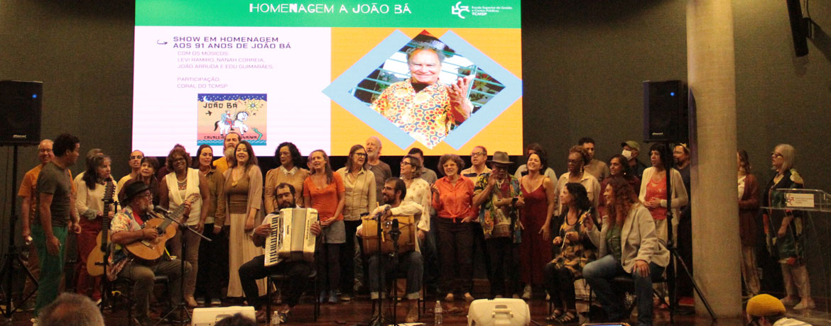 Dois dias de evento na Escola Superior de Gestão e Contas Públicas (EGC) do Tribunal de Contas do Município de São Paulo (TCMSP) marcaram uma grande homenagem ao cantor, autor de mais de 200 músicas, poeta, ator e contador de histórias, João Batista Oliveira, mais conhecido como João Bá que, em 2023, completaria 91 anos de idade.