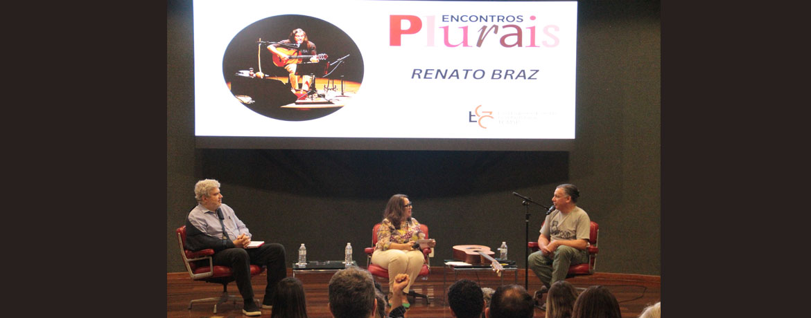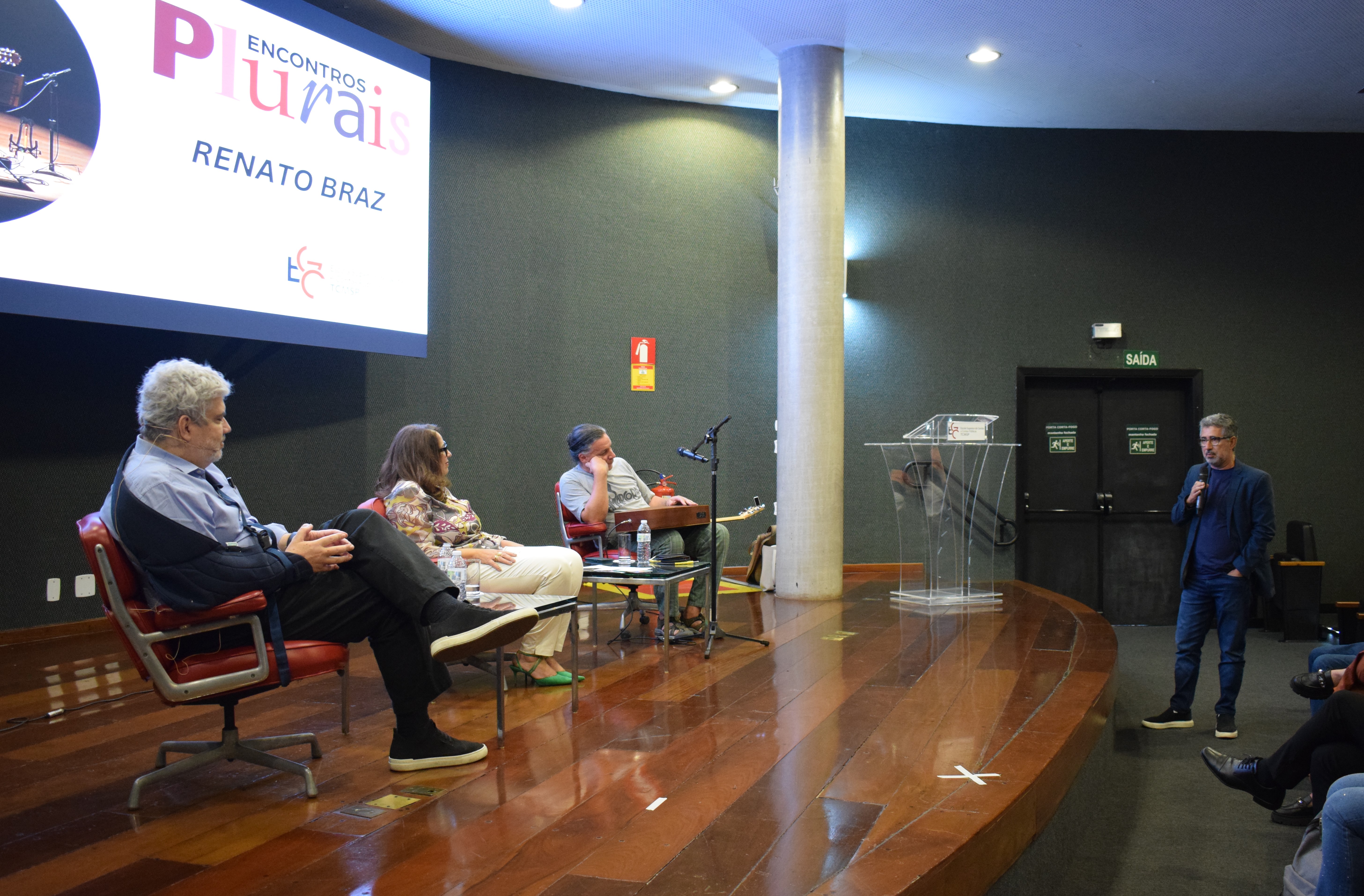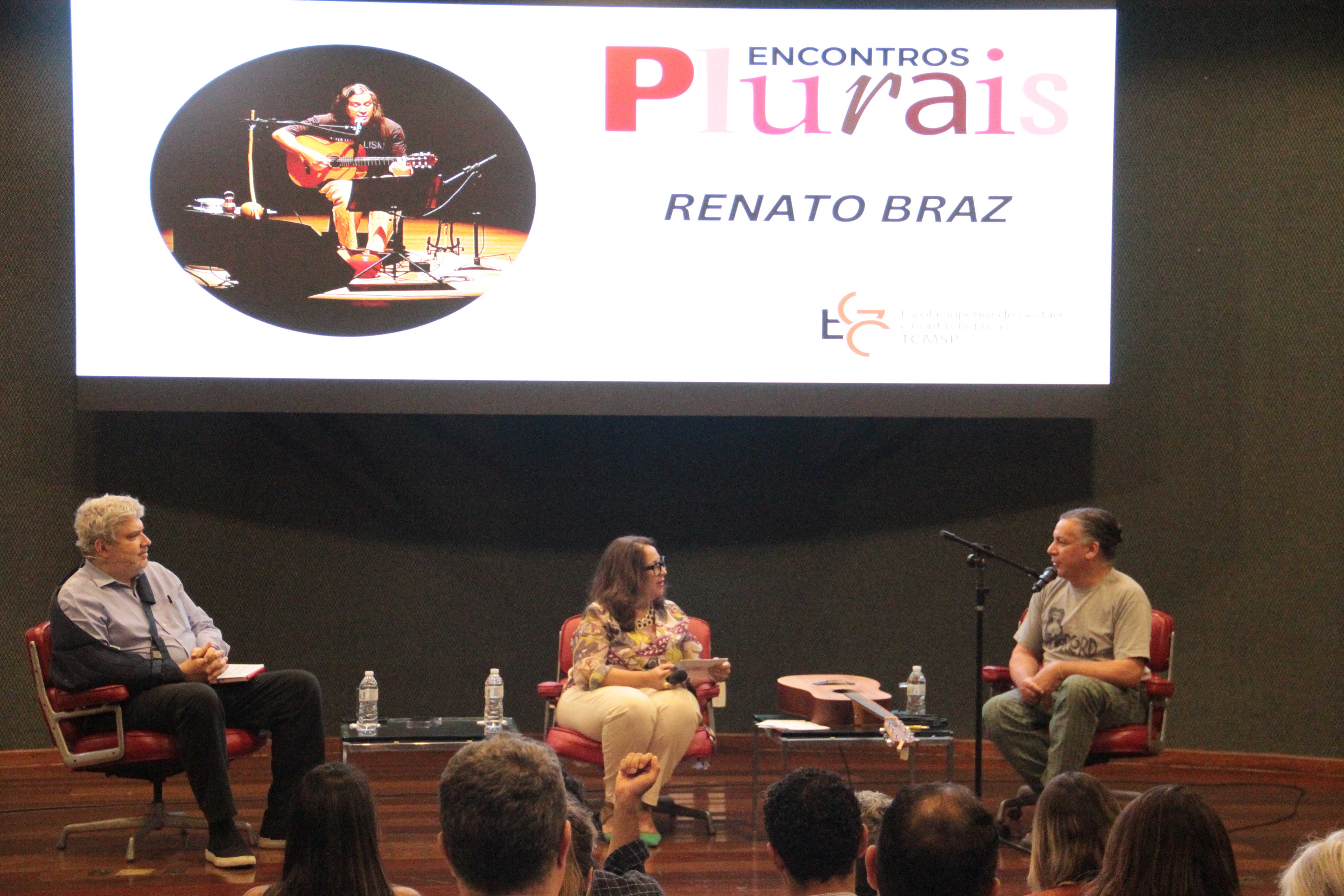 O cantor, violonista e percussionista Renato Braz subiu ao palco do auditório da Escola Superior de Gestão e Contas Públicas (EGC) do Tribunal de Contas do Município de São Paulo (TCMSP) para participar do programa Encontros Plurais, na quinta-feira (24/08). O momento foi regado com boas histórias, música e muita emoção transmitida pelos mais de 20 anos de carreira do artista.