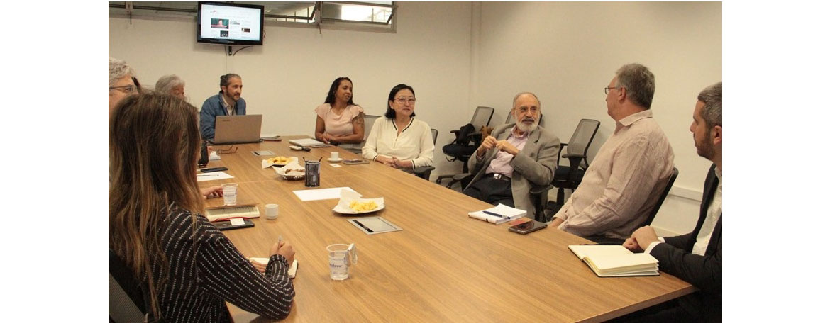 A coordenadora do Observatório de Políticas Públicas (OPP) do Tribunal de Contas do Município de São Paulo (TCMSP), Egle Monteiro, e a coordenadora adjunta, Harmi Takiya, acompanhadas de membros dos Grupos de Trabalho (GTs) que compõem o Observatório, realizaram, na terça-feira, 27 de junho, uma reunião de trabalho com o professor Guilherme Ary Plonski, diretor do Instituto de Estudos Avançados da Universidade de São Paulo (IEA-USP). O encontro ocorreu na sede do Instituto, na Cidade Universitária, e contou ainda, por parte do IEA, com a participação da professora Janina Onuki e do assistente acadêmico Rafael Borsanelli.