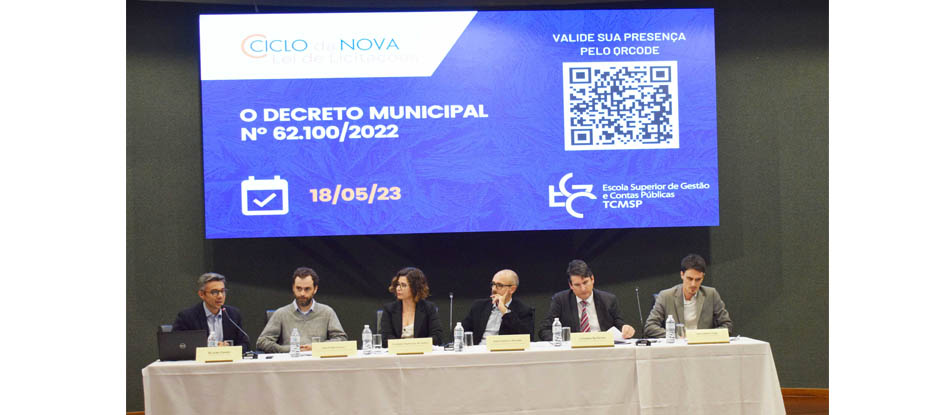 A Escola Superior de Gestão e Contas Públicas (EGC), do Tribunal de Contas do Município de São Paulo (TCMSP), reiniciou o Ciclo da Nova Lei de Licitações, na quinta-feira (19/05), tratando sobre "O Decreto Municipal nº 62.100/2022".