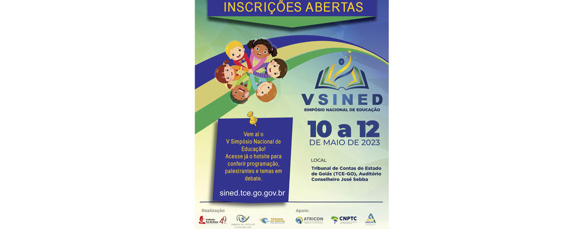 Será realizado, de 10 a 12 de maio, no auditório Conselheiro José Sebba do Tribunal de Contas do Estado de Goiás (TCE-GO) o 5º Simpósio Nacional de Educação (Sined), que reunirá especialistas de todo o país para discutir a interação entre o controle externo e a sociedade na área da educação.