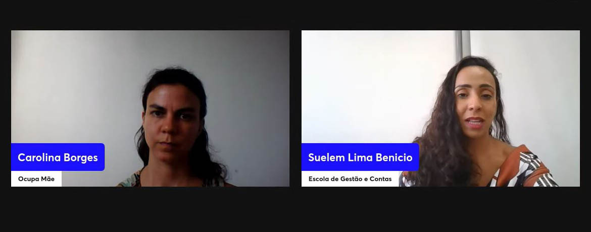 A palestrante, Carolina Borges, formada em Ciências da Computação e pós-graduanda no curso de Gestão e Controle Social de Políticas Públicas da EGC, é responsável pelo movimento Ocupa Mãe, que tem como missão construir um mundo mais acolhedor para mães e crianças por meio da participação política.
