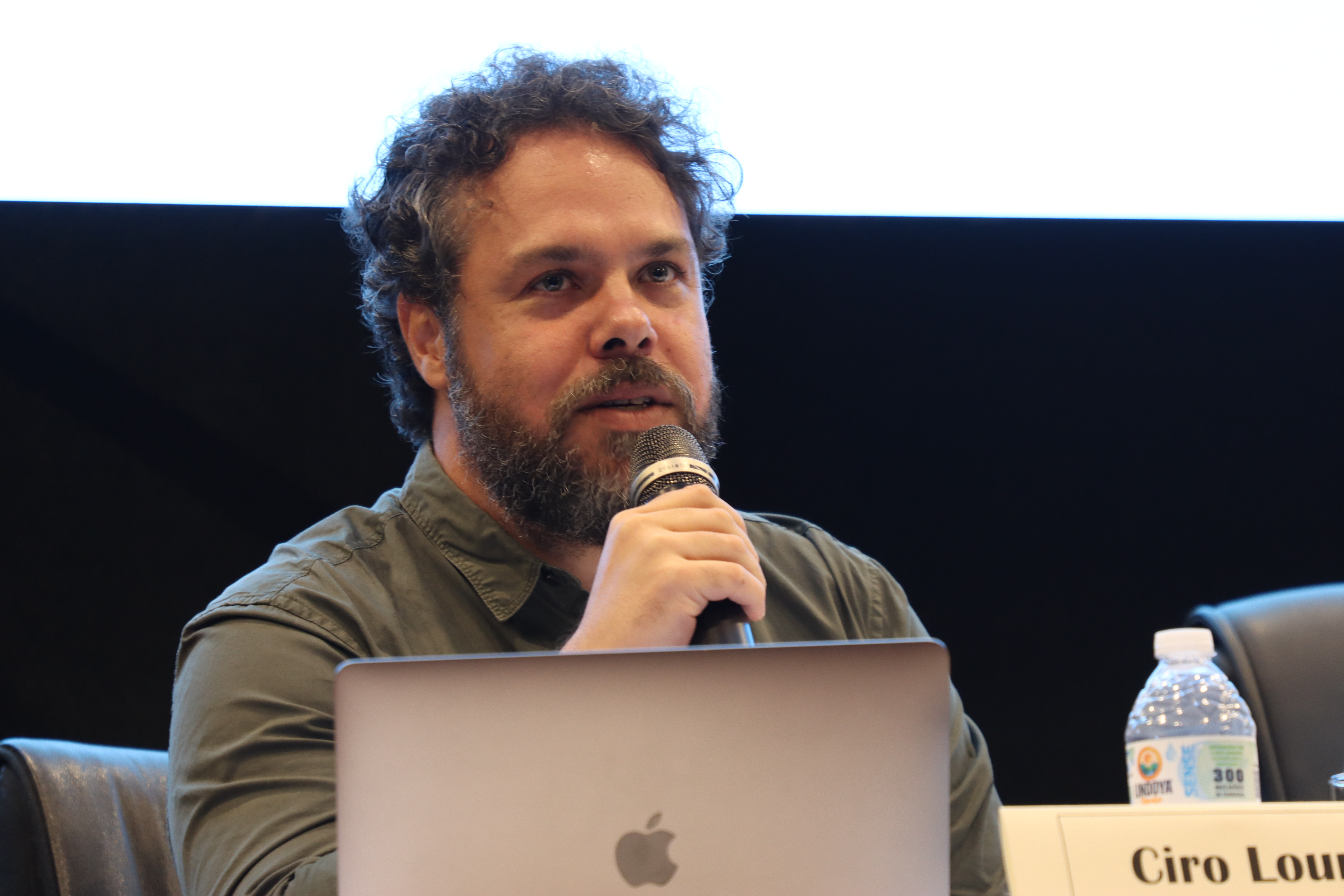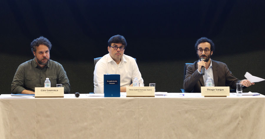 Em seguida, foi apresentado o professor Ciro Lourenço, da Universidade Federal de Uberlândia, que tem mestrado em Filosofia pela USP e, atualmente, é doutorando em dupla titulação pela USP e pela Université de Paris 1 - Panthéon-Sorbonne. Sua pesquisa concentra-se sobre as ideias de justiça e igualdade na filosofia política moderna, com especial atenção ao pensamento de Rousseau. É tradutor de Do Contrato Social na coletânea Rousseau – Escritos sobre a política e as artes e Do espírito das leis, de Montesquieu.