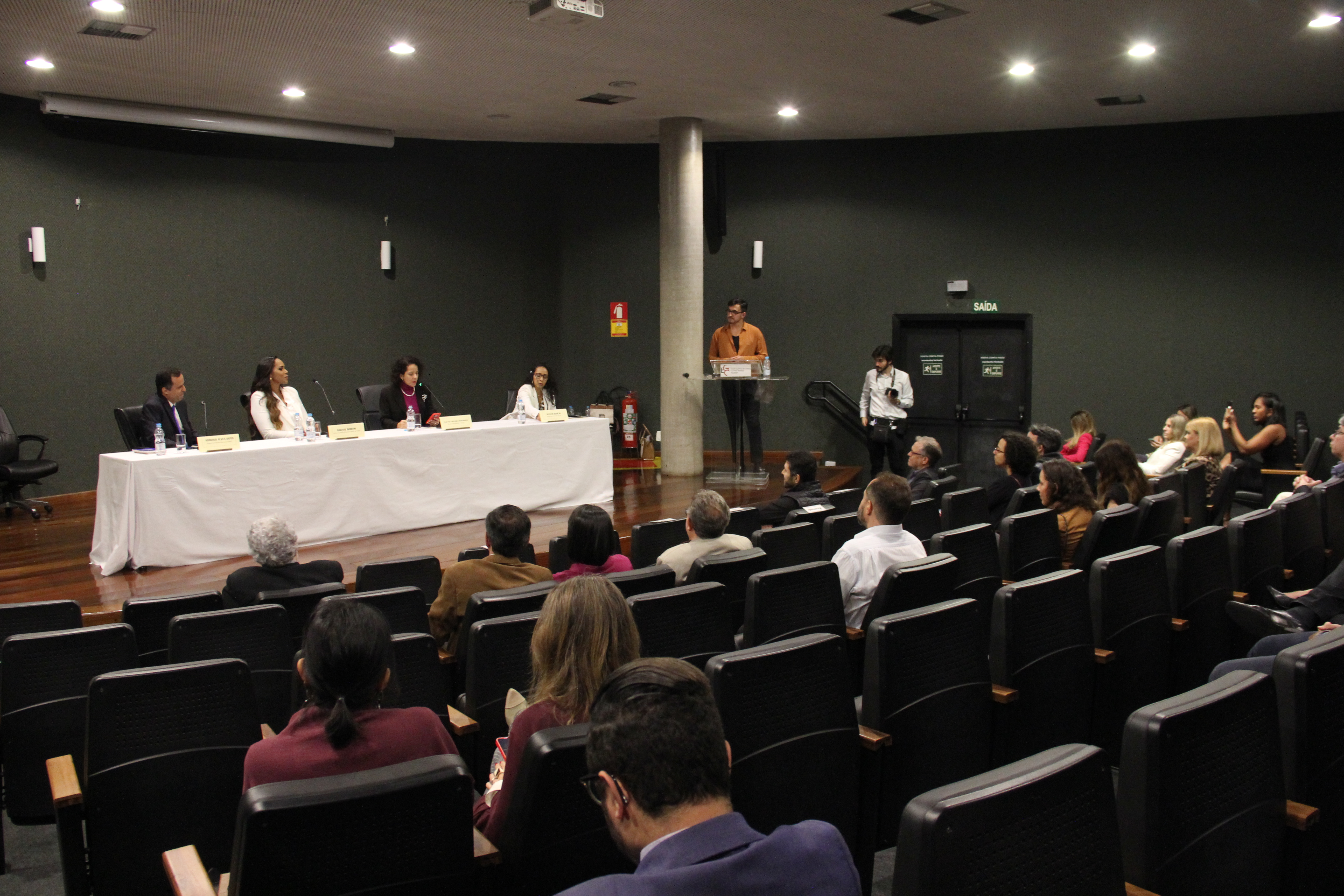 Participaram da mesa de debates junto com a autora, a professora-doutora Ana Carla Bliacheriene, diretora-presidente da EGC; a pesquisadora e professora da EGC, Suelem Benício; e o auditor do TCMSP na coordenadoria de educação, Adriano Doto.