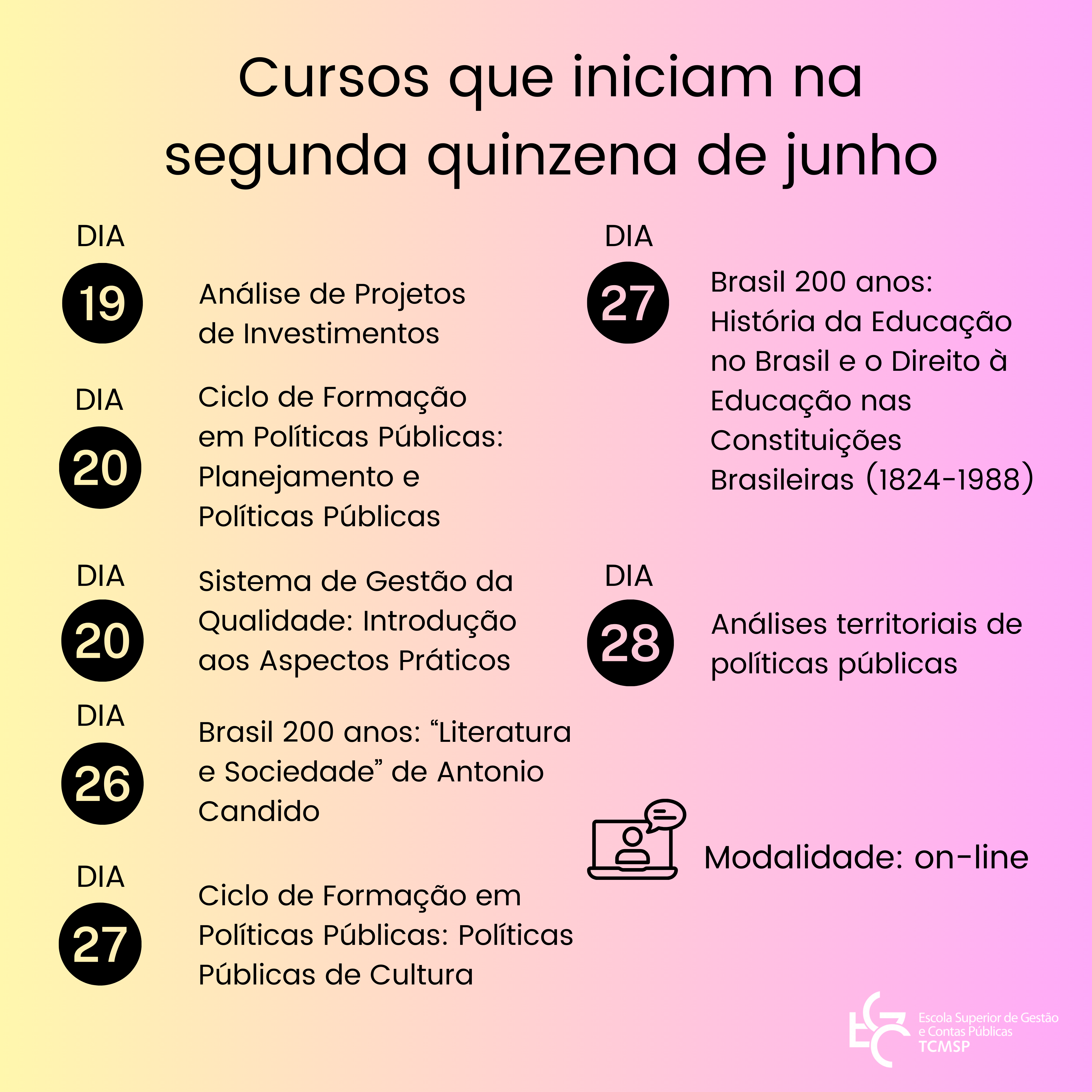 Novos cursos para você na segunda quinzena de junho EGC - Notícias