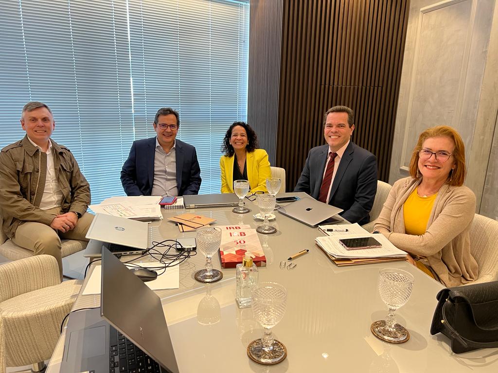 A Diretora-Presidente, Profa. Dra. Ana Carla Bliacheriene e o Chefe de Gabinete da EGC, Prof. Dr. Luciano Vieira de Araújo se reúnem na tarde de 25/08, com a equipe do IRB, na sede de Brasília-DF, para dar andamento aos projetos de colaboração entre as duas instituições.