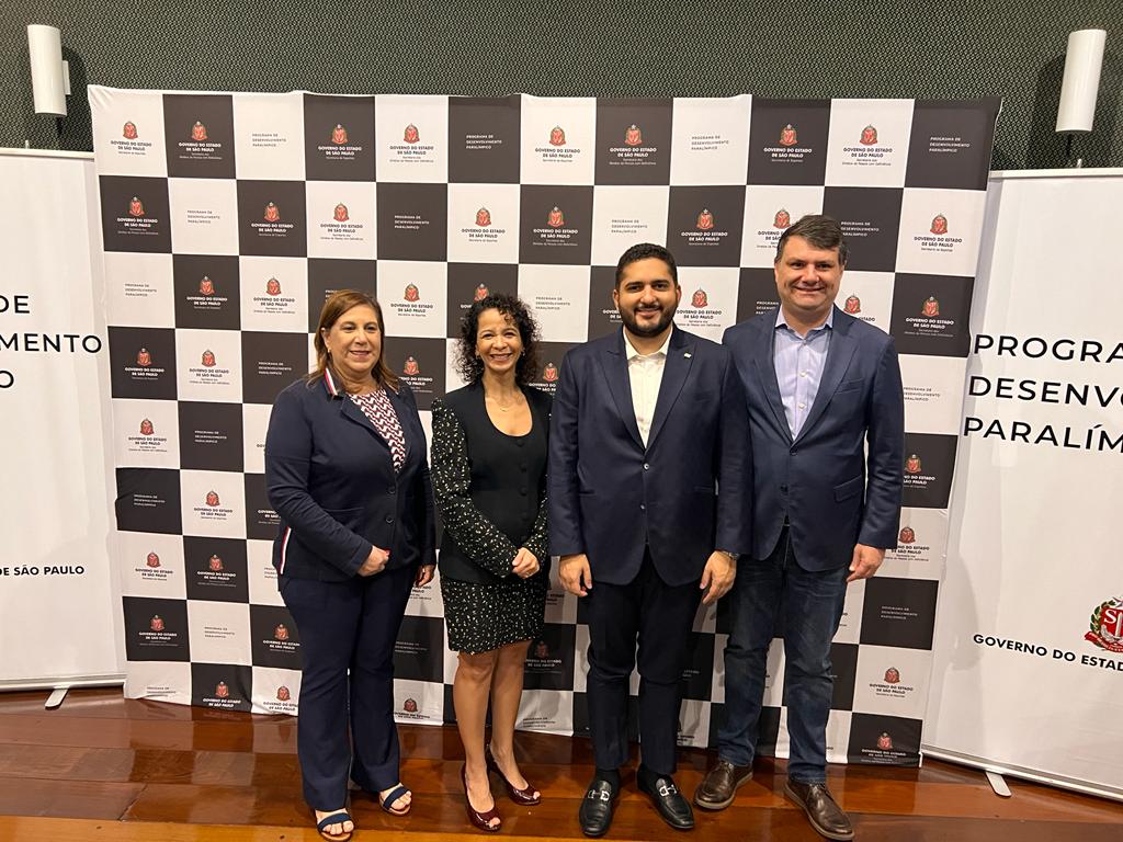 Da direita para a esquerda: Secretário Municipal de Esportes e Lazer, Dr. Carlos Augusto Manoel Vianna; Secretário Estadual de Esportes, Dr. Thiago Mihim;  Diretora-Presidente da EGC, Profa. Dra. Ana Carla Bliacheriene; e Secretária Municipal da Pessoa com Deficiência, Dra. Silvia Grecco.