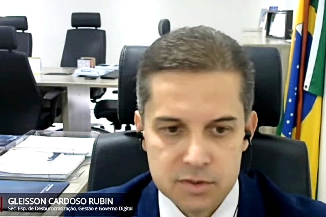 O seminário on-line teve como palestrante convidado o secretário especial adjunto de Desburocratização, Gestão e Governo Digital do Ministério da Economia, Gleisson Cardoso Rubin. Licenciado em Matemática pela Universidade de Brasília (UNB), com especialização em Matemática e Estatística pela Universidade Federal de Lavras, em Minas Gerais, integra há 23 anos a carreira de especialista em Políticas Públicas e Gestão Governamental. Exerceu, também, diversos cargos na administração pública federal a presidência da Escola Nacional de Administração Pública (Enap), vinculada ao Ministério da Economia do Brasil. No âmbito da governança corporativa, presidiu os conselhos da administração da Casa da Moeda do Brasil e da Agência Especial de Financiamento Industrial – Finame, empresa pública brasileira subsidiária do Banco Nacional de Desenvolvimento Econômico e Social – BNDES.