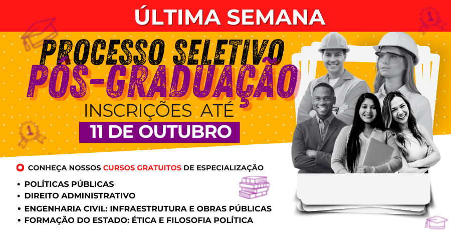 O prazo para quem pretende concorrer a uma das 155 vagas para ingresso nos cursos de pós-graduação da EGC segue até o dia 11 de outubro de 2024. São oferecidas 35 vagas para os cursos de “Políticas Públicas”, “Direito Administrativo” e “Engenharia Civil: Infraestrutura e Obras Públicas”. Já o curso de “Formação do Estado: Ética e Filosofia Política” conta com 50 vagas.