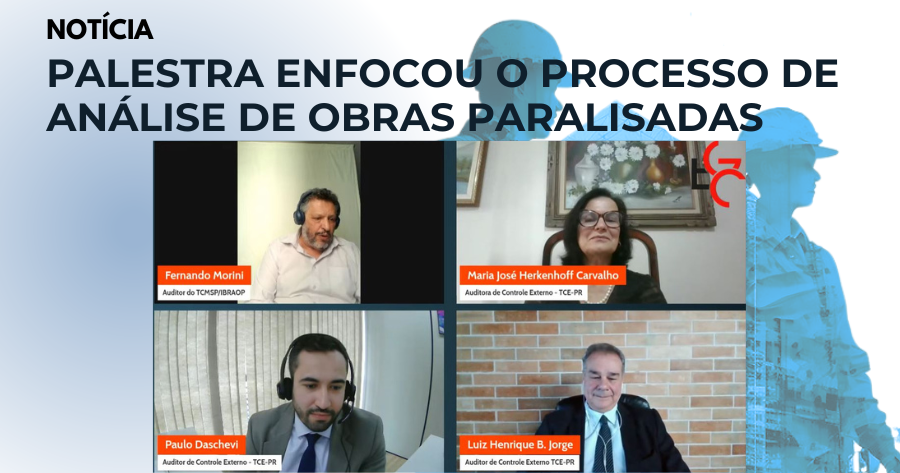 Na terça-feira (15/10), a nova apresentação virtual da série Ciclo de Palestras “Auditoria de Obras Públicas” enfocou questões envolvendo o processo de análise de obras paralisadas no Estado do Paraná, considerado referência nesse tipo de fiscalização de obras. A iniciativa é da Escola de Gestão e Contas Públicas (EGC), vinculada ao Tribunal de Contas do Município de São Paulo, com o objetivo de abordar as diversas temáticas relativas à fiscalização de obras do setor público. O evento teve apoio do Instituto Brasileiro de Auditoria de Obras Públicas (Ibraop) e foi realizado ao vivo, com transmissão pelo canal do YouTube da Escola.