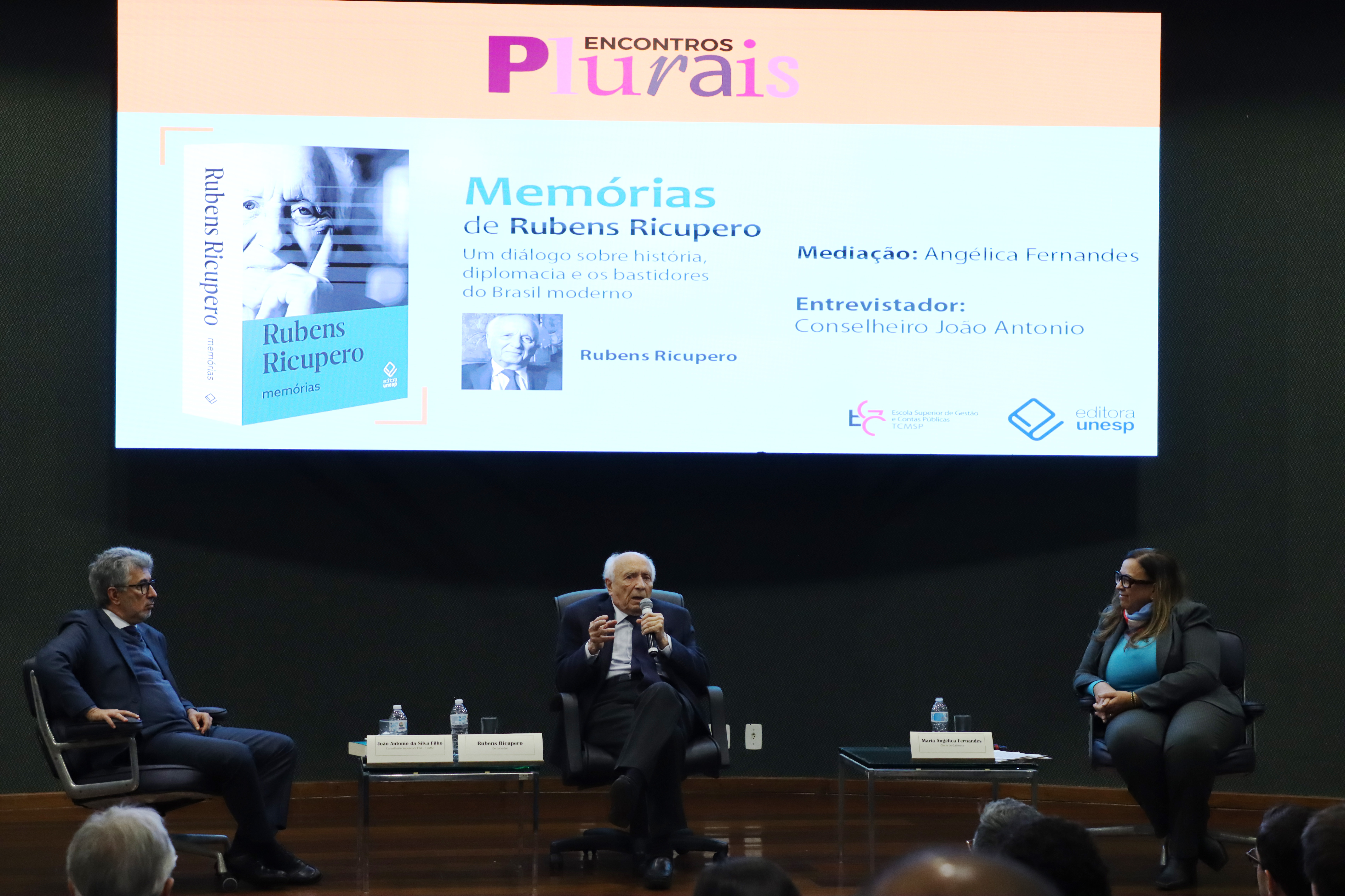 Nesta quinta-feira (29/05), o auditório da Escola Superior de Gestão e Contas Públicas (EGC), vinculada ao Tribunal de Contas do Município de São Paulo (TCMSP), foi palco de um encontro memorável com o professor, diplomata e ex-ministro Rubens Ricupero. A palestra, integrando o programa Encontros Plurais, se converteu numa oportunidade especial para o público pudesse conhecer histórias inéditas do cenário político e econômico do país, contadas por um dos principais personagens e participantes ativos daquele período.