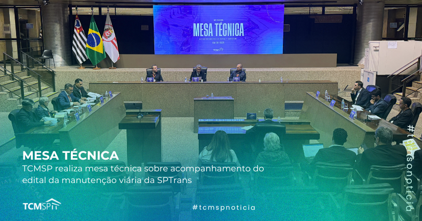 O Tribunal de Contas do Município de São Paulo (TCMSP) realizou uma mesa técnica no Plenário da Corte, nesta segunda-feira, 4, para discutir o Acompanhamento do Edital SPTRANS 006/2025, que trata da prestação de serviços de manutenção do pavimento, guias, sarjetas, bocas de lobo e demais serviços complementares de interesse da operação de transporte coletivo público de passageiros da Cidade de São Paulo, TC/008102/2025.