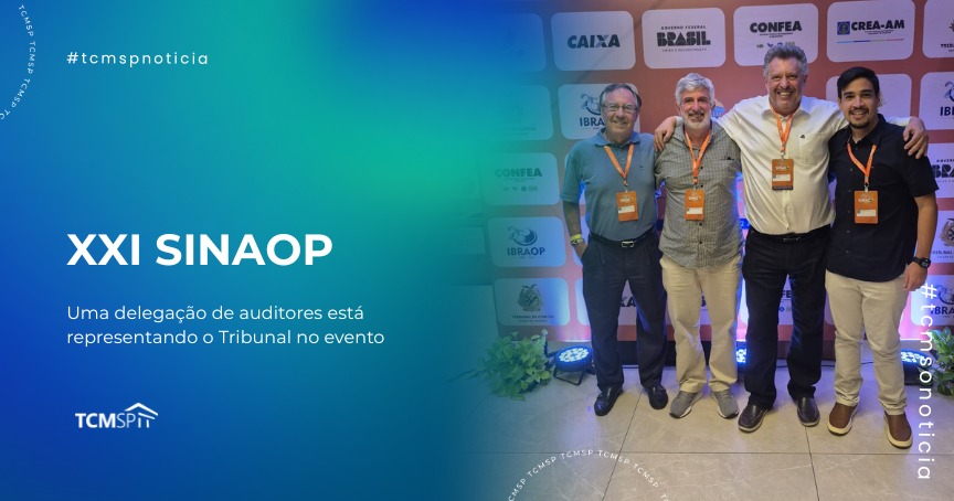 O Tribunal de Contas do Município de São Paulo (TCMSP) participa, com uma delegação de servidores, do XXI Simpósio Nacional de Auditoria de Obras Públicas (SINAOP), que ocorre de 18 a 22 de agosto, em Manaus. O evento é promovido pelo Instituto Brasileiro de Auditoria de Obras Públicas (IBROAP), em parceria com o Tribunal de Contas do Estado do Amazonas (TCE-AM).