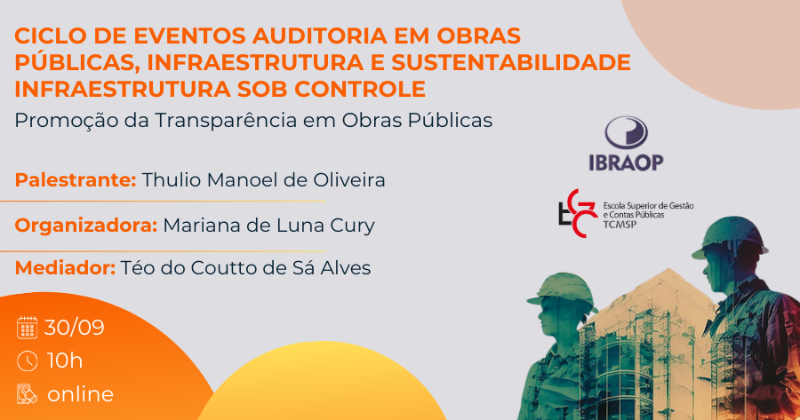 O evento faz parte do ciclo Auditoria em Obras Públicas, Infraestrutura e Sustentabilidade.