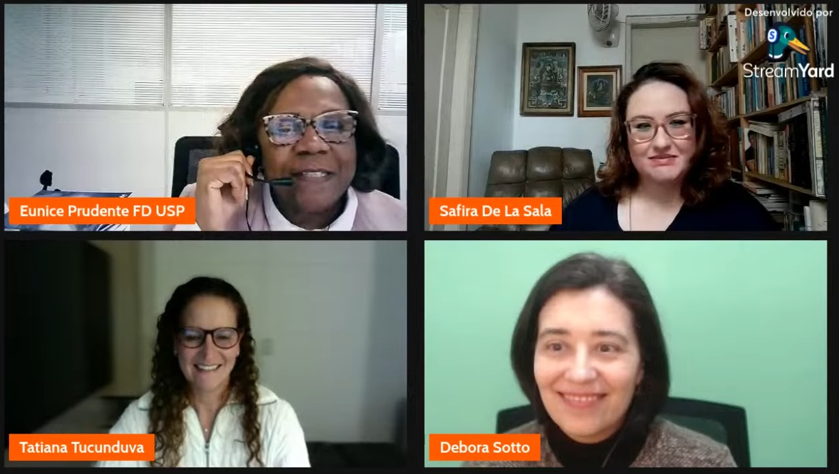 A primeira palestrante a se apresentar foi Tatiana Tucunduva Cortese, pesquisadora do Instituto de Estudos Avançados da Universidade de São Paulo, docente do programa de pós-graduação em Cidades Inteligentes e Sustentáveis da Universidade Nove de Julho, e professora da FGV Law. Ela iniciou sua fala contextualizando a realidade brasileira com eventos climáticos extremos recentes, como as tempestades e vendavais na capital de São Paulo, além de incêndios no interior do Estado, essas experiências demostram, para a especialista, a urgência do debate.