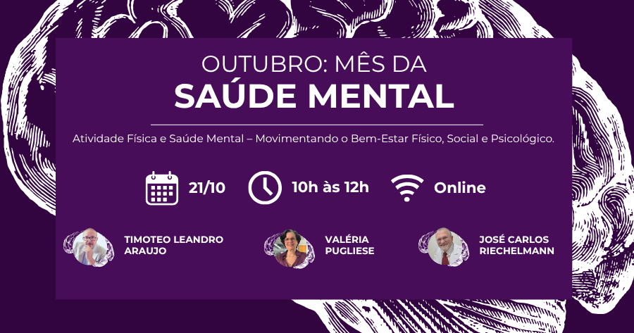 O evento, em alusão ao Dia Mundial da Saúde Mental (10/10), traz a reflexão sobre como o exercício físico contribui também para o bem-estar psicológico. A atividade promoverá um diálogo multidisciplinar sobre os impactos da prática regular de atividade física na prevenção e no tratamento de transtornos como estresse, ansiedade e depressão, além da importância para manutenção da qualidade de vida.