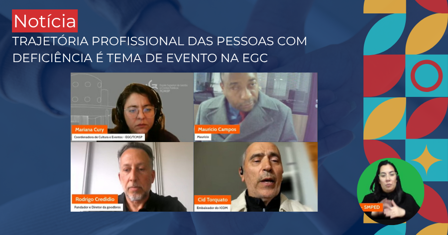 A Escola Superior de Gestão e Contas Públicas (EGC), vinculada ao Tribunal de Contas do Município de São Paulo, promoveu um encontro de especialistas para debater o tema “Trajetória Profissional das Pessoas com Deficiência: o Papel da Gestão Pública Inclusiva”. O evento virtual abordou os desafios e oportunidades com vistas à inserção de pessoas com deficiência no mercado de trabalho.