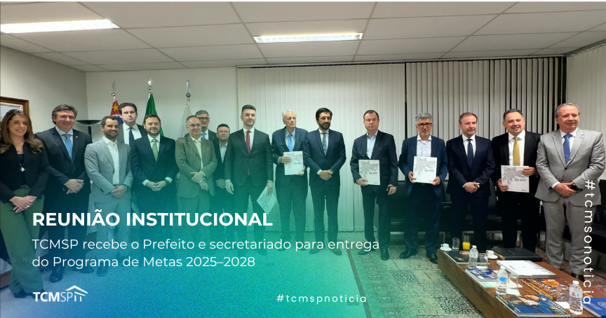 O Tribunal de Contas do Município de São Paulo (TCMSP) recebeu, nesta terça-feira (14), o Prefeito Ricardo Nunes e uma comitiva de secretários municipais para a entrega oficial do Programa de Metas da Prefeitura para o período de 2025 a 2028. A reunião institucional foi realizada na sala da Presidência e contou com a presença de todos os conselheiros da Corte.