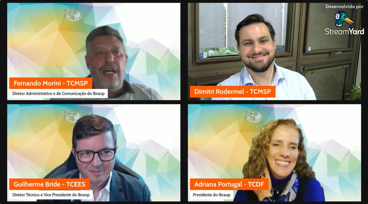 O evento contou com a participação de Adriana Portugal, presidente do IBRAOP e auditora de Controle Externo do TCDF, que atuou como diretora do Núcleo de Fiscalização de Obras e Serviços de Engenharia; Guilherme Bride, vice-presidente e diretor Técnico do IBRAOP e auditor de Controle Externo do TCE-ES, que coordena o Núcleo de Controle Externo de Edificações desde 2021; e, Fernando Morini, auditor de Controle Externo do TCMSP, que coordena os GTs BIM do TCMSP e do IBRAOP.