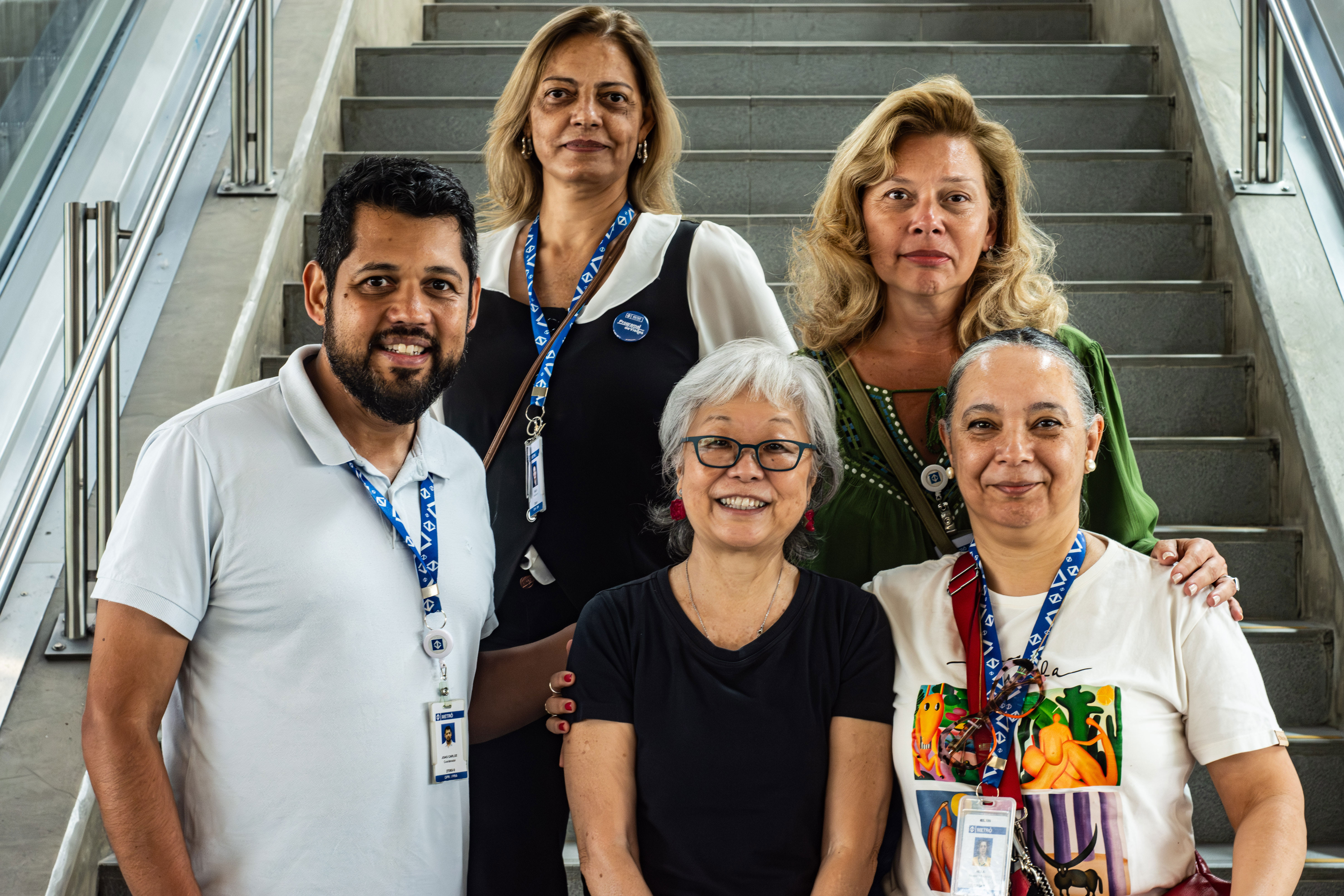 Profa. Harmi Takiya e profissionais técnicos do Metrô e da